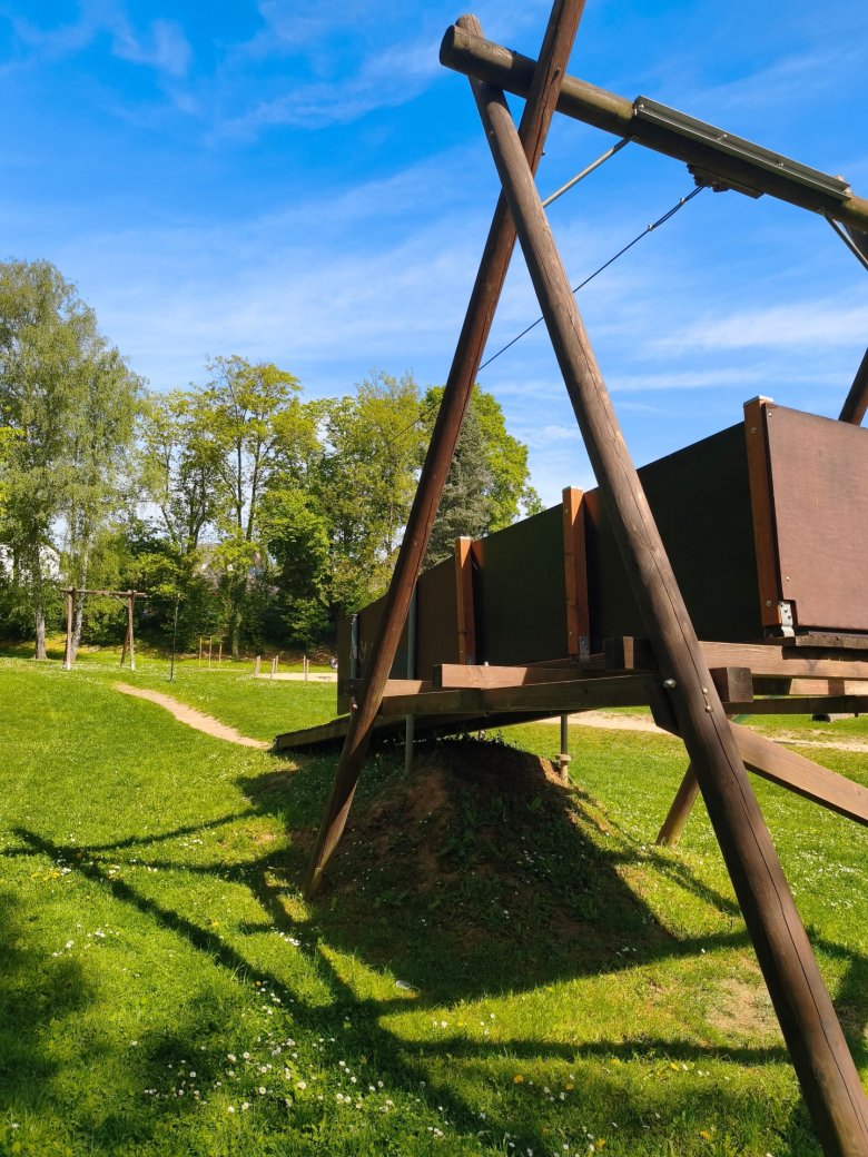 Da die Seilbahn jedoch ein zentrales und prägendes Spielgerät der Anlage ist, fiel schließlich die Entscheidung zugunsten einer Reparatur. Zu Wochenbeginn wurde diese durch den gemeindlichen Bauhof erfolgreich umgesetzt. Dabei wurden unter anderem der Boden der Anlaufplattform sowie die umlaufende Brüstung inklusive der Pfosten vollständig erneuert.