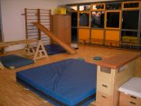 Unser Bewegungsraum bietet viele Möglichkeiten zum Klettern ,Schaukeln, Schwingen, Rutschen – zum aktiv in Bewegung sein